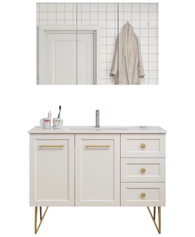 バスルームバニティシンクベースキャビネット、右側に3段引き出し付き収納キャビネット、バスルーム家具に適しています
